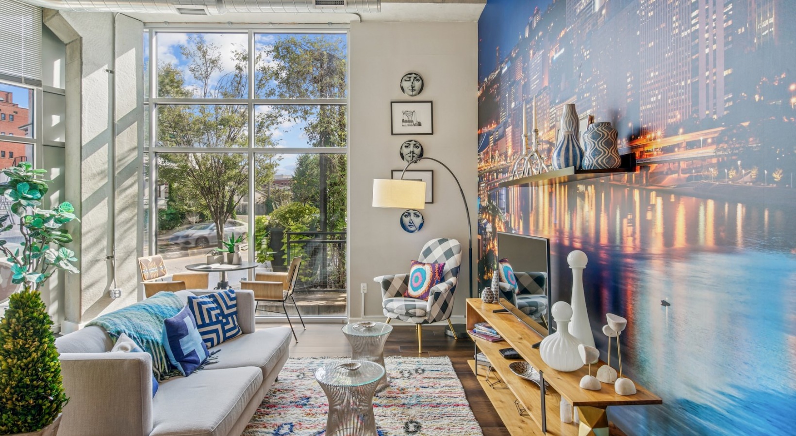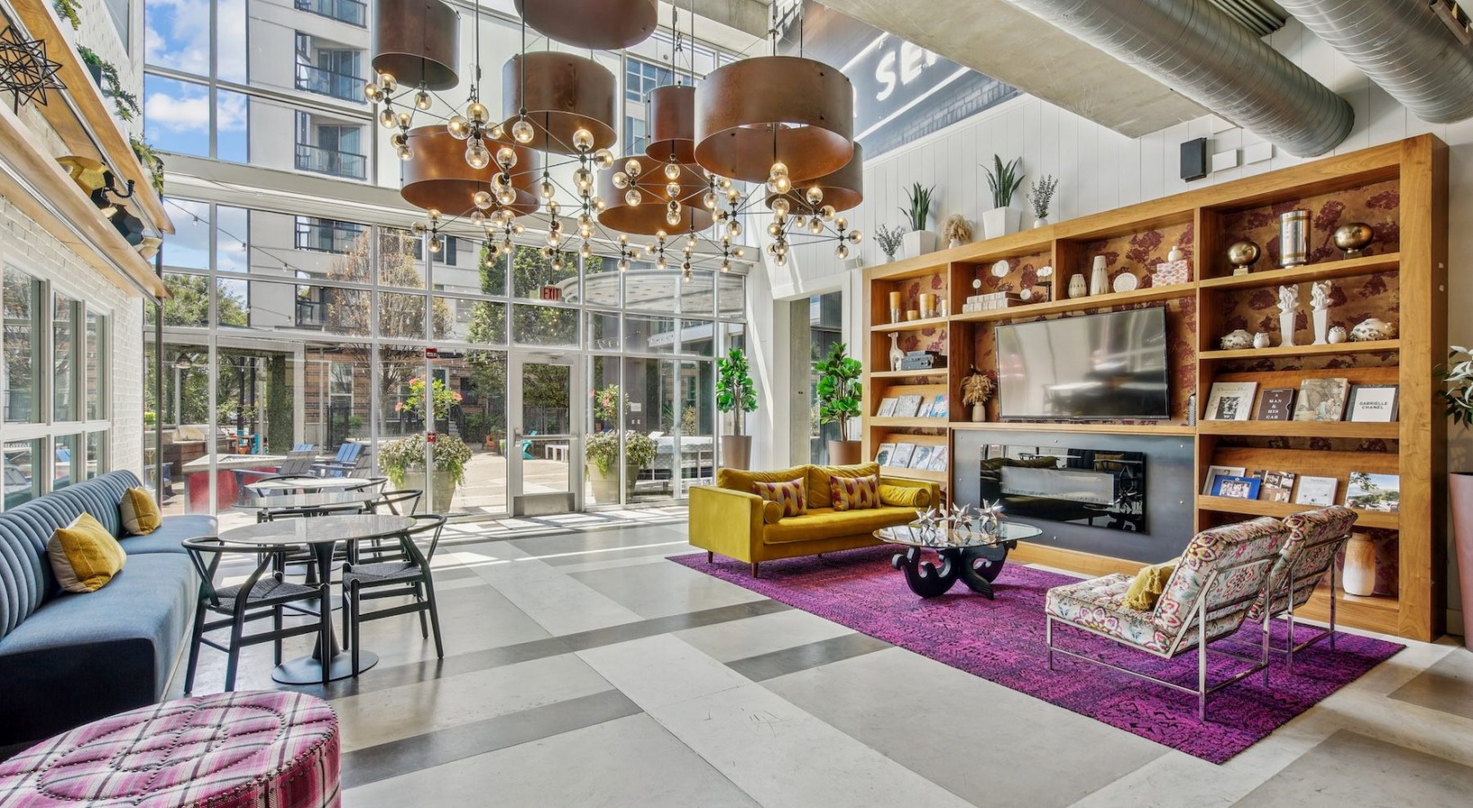 Instagram post from @albionatmorrowpark on June 04, 2025 00:00:00am lounge with colorful decor a floorplan drawing kitchen with ample counter-space, modern appliances and bright lighting