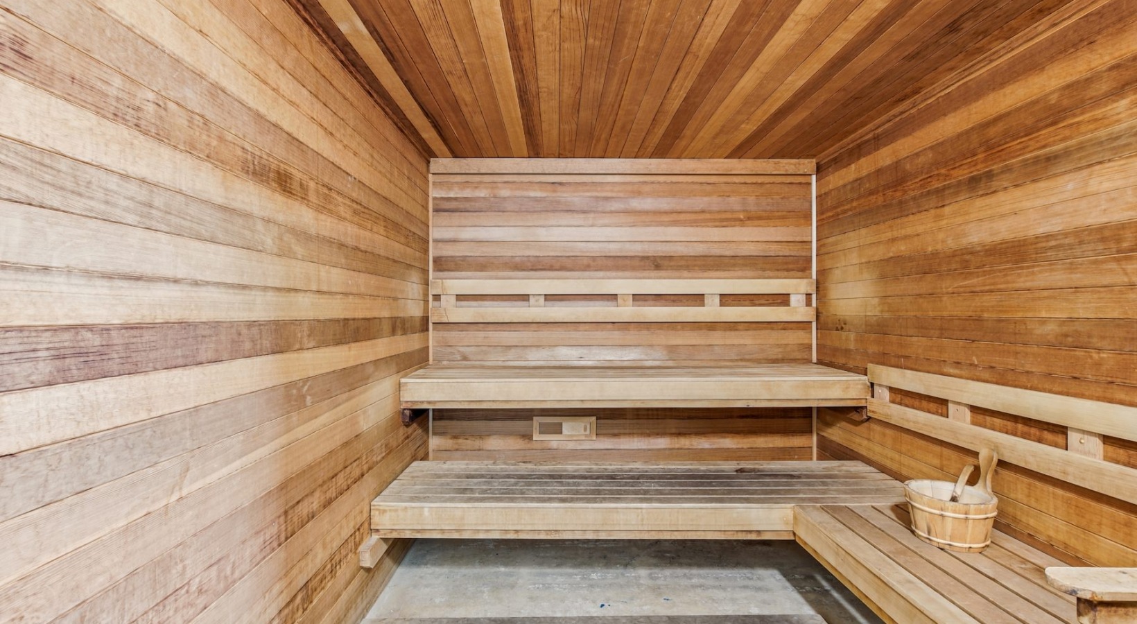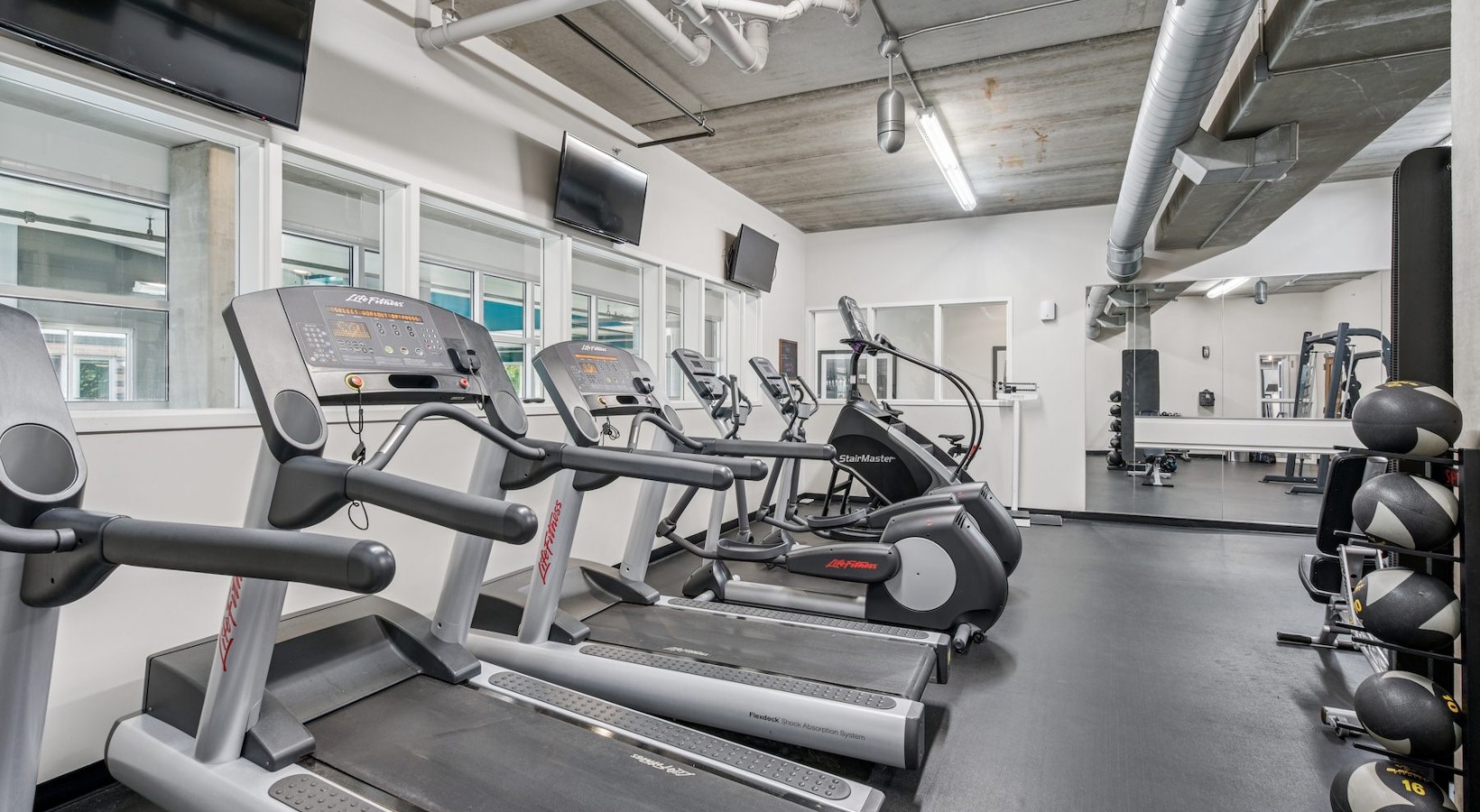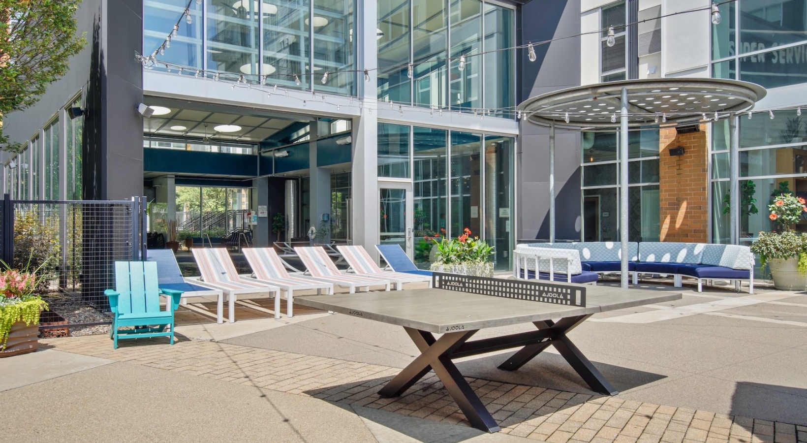 • The indoor pool at Albion at Morrow Park Apartments in Pittsburgh, PA, featuring lounge chairs and couches.